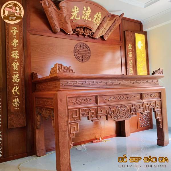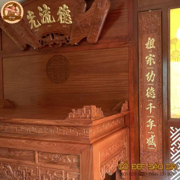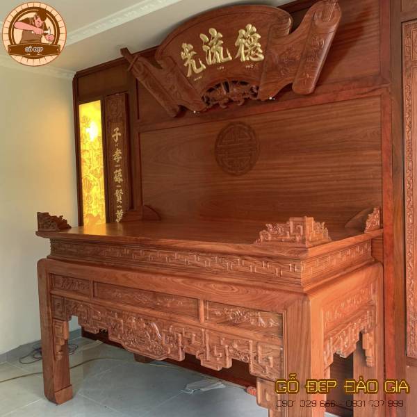 Án Gian Thờ Gỗ Hương Đá BT 556 không chỉ đẹp mắt mà còn mang trong mình ý nghĩa sâu sắc về tôn giáo và tâm linh. Sự kết hợp của các biểu tượng và linh vật tâm linh truyền thống tạo nên một không gian kính trọng và thiêng liêng, giúp bạn tìm thấy sự yên bình và kết nối tâm linh.