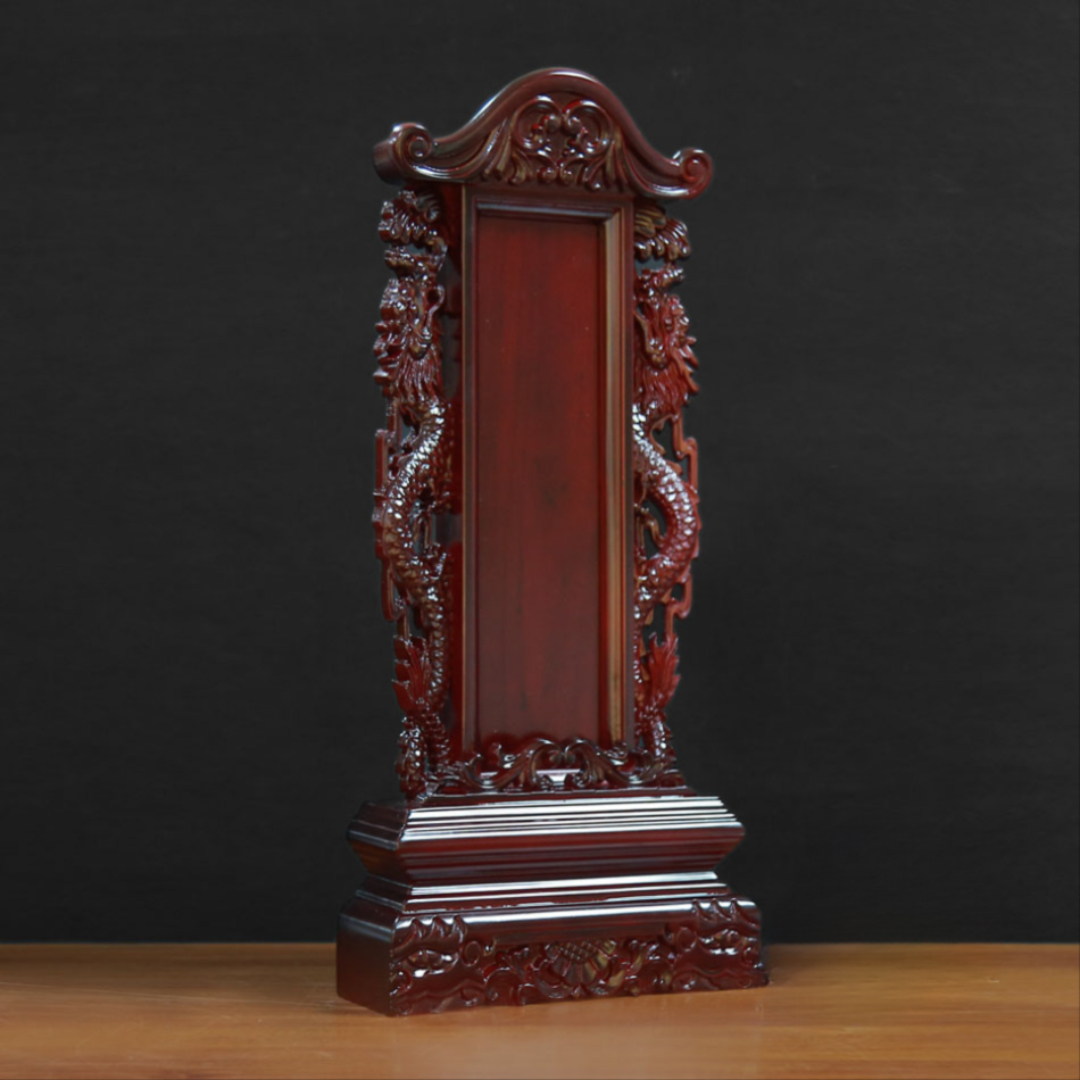 Bài Vị Gỗ Long Não Màu Nâu Khắc Rồng 04