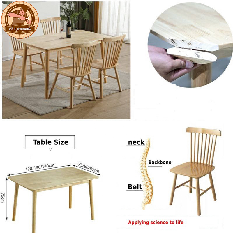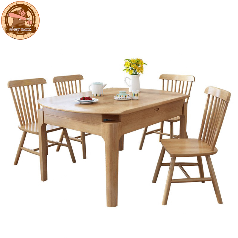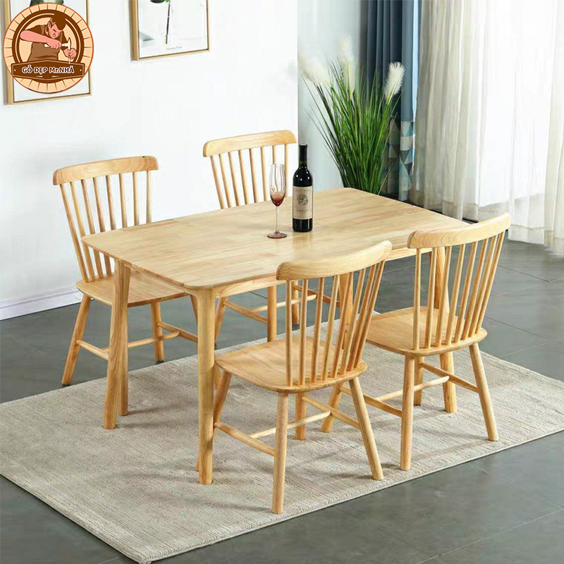 Bàn Ghế Phòng Bếp Sang Trọng Hiện Đại BG 05 bao gồm một bàn và bốn ghế được chế tác từ gỗ tự nhiên, tạo nên độ bền và ổn định trong suốt quá trình sử dụng. Thiết kế của sản phẩm rất tối giản và hiện đại, với đường nét sắc sảo và tinh tế, phù hợp với nhiều phong cách trang trí khác nhau.