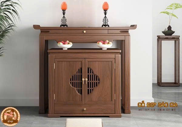 Án Gian Thờ BT 5668 được cân đối theo thước lỗ ban phong thủy số đẹp mang đến cho gia chủ nhiều tài lộc, may mắn, bình an. Có nhiều màu sắc gỗ tự nhiên, màu cánh gián và màu nâu,... Có nhiều sự lựa chọn cho quý gia chủ và sự hài hòa còn nằm ở lối trang trí đẹp có kết hợp trang trí với bộ ốp vách và viền góc kiểu dáng khác nhau làm tăng thêm sự sang trọng cho không gian thờ.