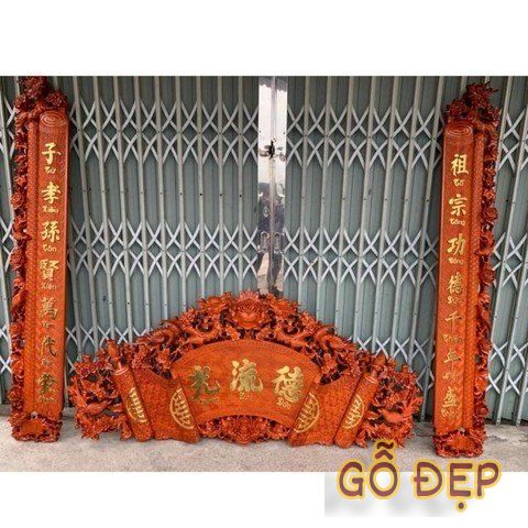 Sự hiện diện của hai con rồng trong Cuốn Thư Câu Đối Song Long Hương Đỏ-09 tại Xưởng Gỗ Đẹp gợi nhắc đến mong muốn về sự thịnh vượng, hạnh phúc và an lành.