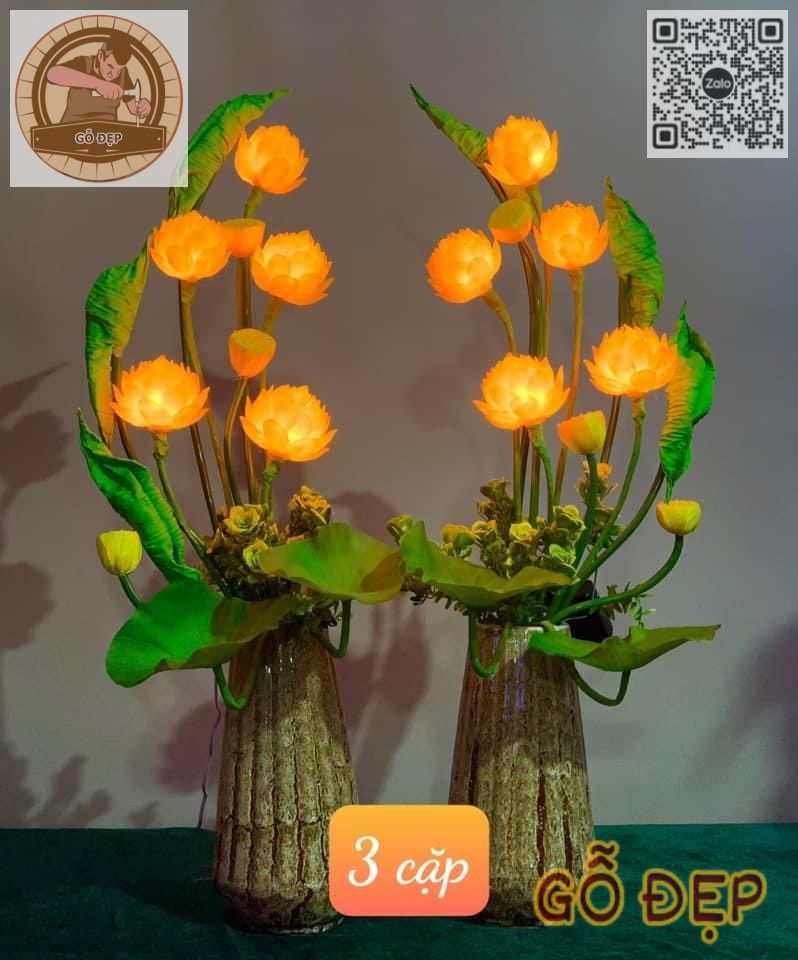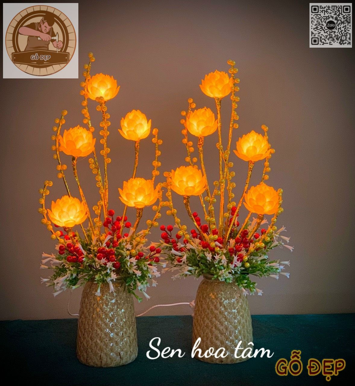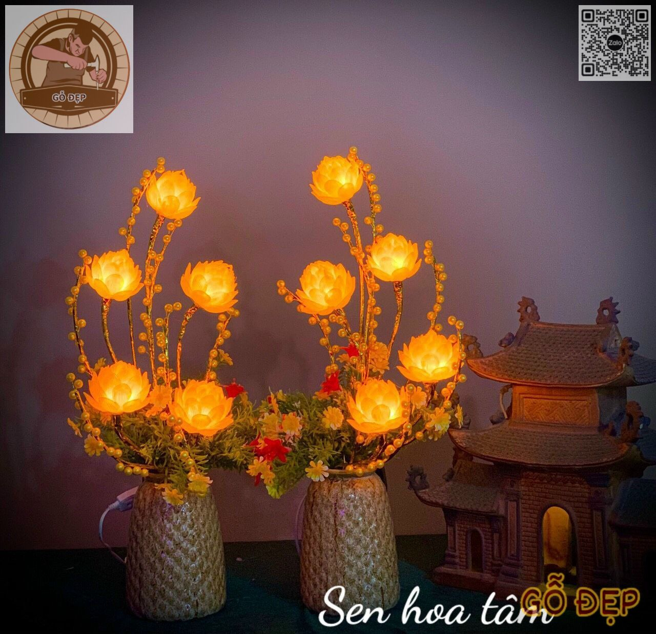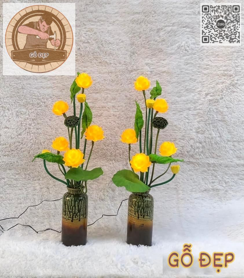 Đèn hoa sen chất liệu nhựa, lá xilicon và bình gốm sứ là những loại đèn trang trí phổ biến được sử dụng để trưng bày trên bàn thờ trong các nghi lễ tôn giáo.