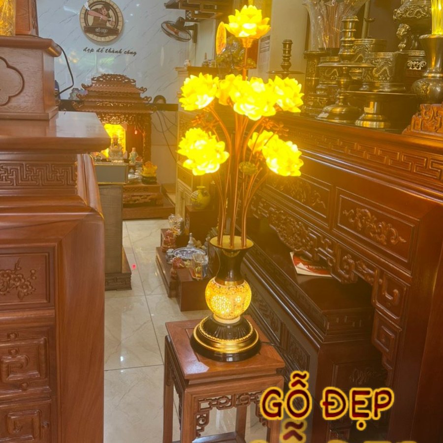 Đèn Thờ Lưu Ly 9 bông sen tại Xưởng Gỗ Đẹp là một lựa chọn phổ biến để tạo không gian trang trọng và tôn kính cho bàn thờ. Đây thường là một thiết bị chiếu sáng nhỏ gọn và đẹp mắt, được sử dụng trong nhiều nền văn hóa và tôn giáo khác nhau.