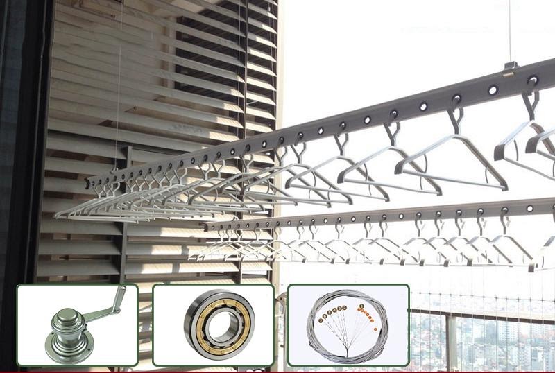 Giàn phơi được thiết kế để có thể gắn trên tường hoặc trần nhà, giúp tiết kiệm diện tích và tạo ra không gian rộng rãi hơn trong nhà.