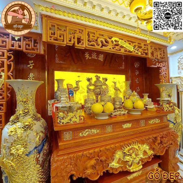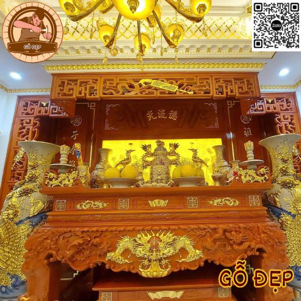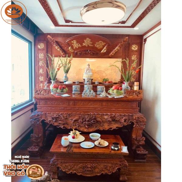 Sập thờ gỗ gõ tạo không gian thờ sang trọng