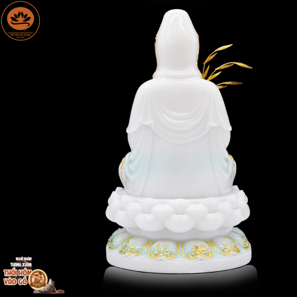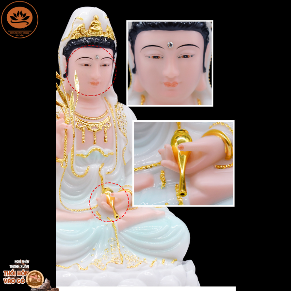 Với ánh mắt trìu mến và nụ cười nhân hậu, truyền đạt sự an lạc và lòng từ bi đến mọi người. Đôi tay nắm giữ hoa sen, biểu tượng của sự tinh khiết và tĩnh lặng, tượng Mẹ Quan Âm thể hiện khả năng chăm sóc và ban phước cho mọi vật chất và tinh thần.