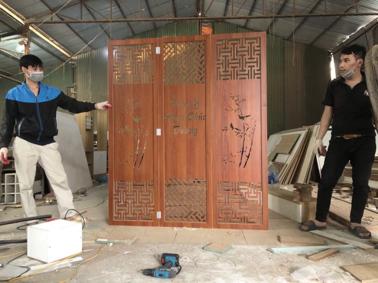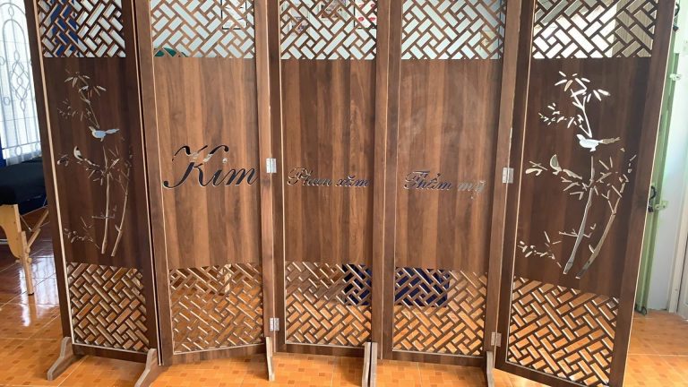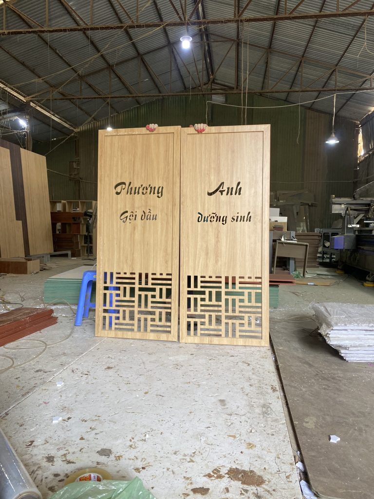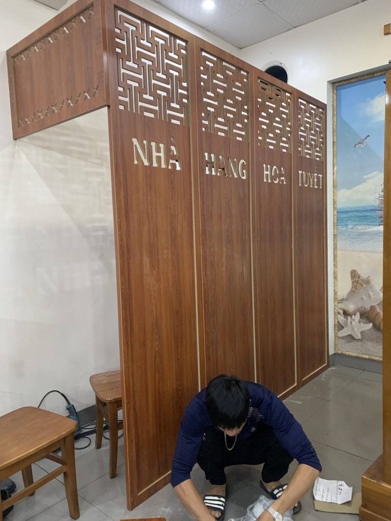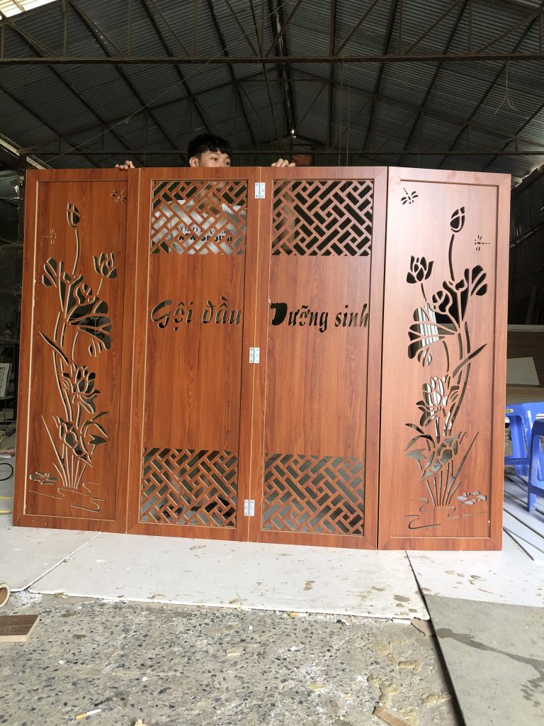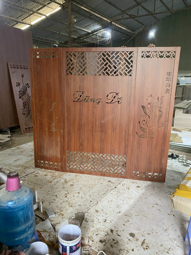 Vách Bình Phong Thiết Kế Tên Thương Hiệu-02 được thiết kế với hình dáng chữ nhật và được trang trí bằng các đường vân gỗ tự nhiên tinh tế, tạo nên một phong cách trang trí tự nhiên và sang trọng. Tuy nhiên, điểm nhấn của sản phẩm chính là tên thương hiệu của bạn được khắc trên bề mặt vách bình phong, tạo nên một không gian sống độc đáo và phong cách.