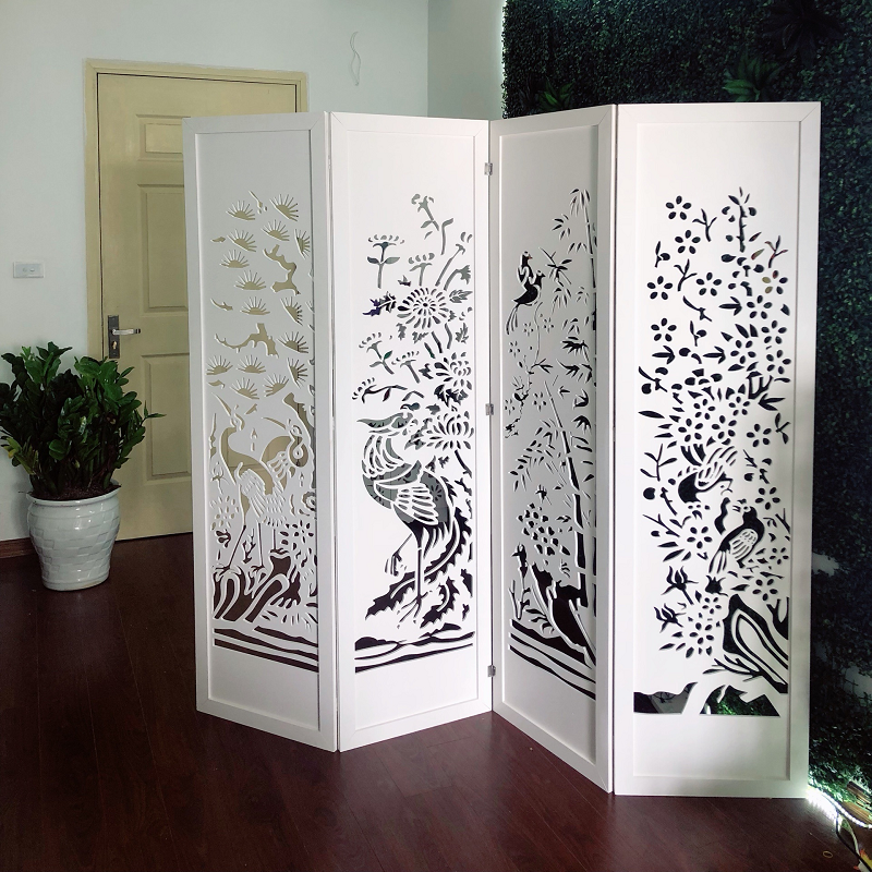 Vách Bình Phong Tứ Quý-12 được thiết kế với hình dáng vuông và được chia thành 4 phần bằng nhau, với mỗi phần được trang trí bằng hoa văn tinh tế. Thiết kế này không chỉ tạo ra khả năng phân chia không gian mà còn giúp bạn tạo ra sự riêng tư và phong cách cho không gian sống.